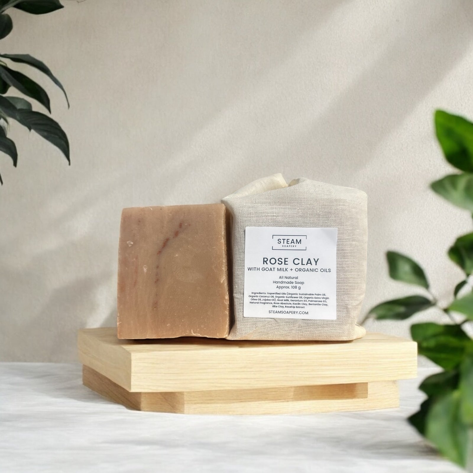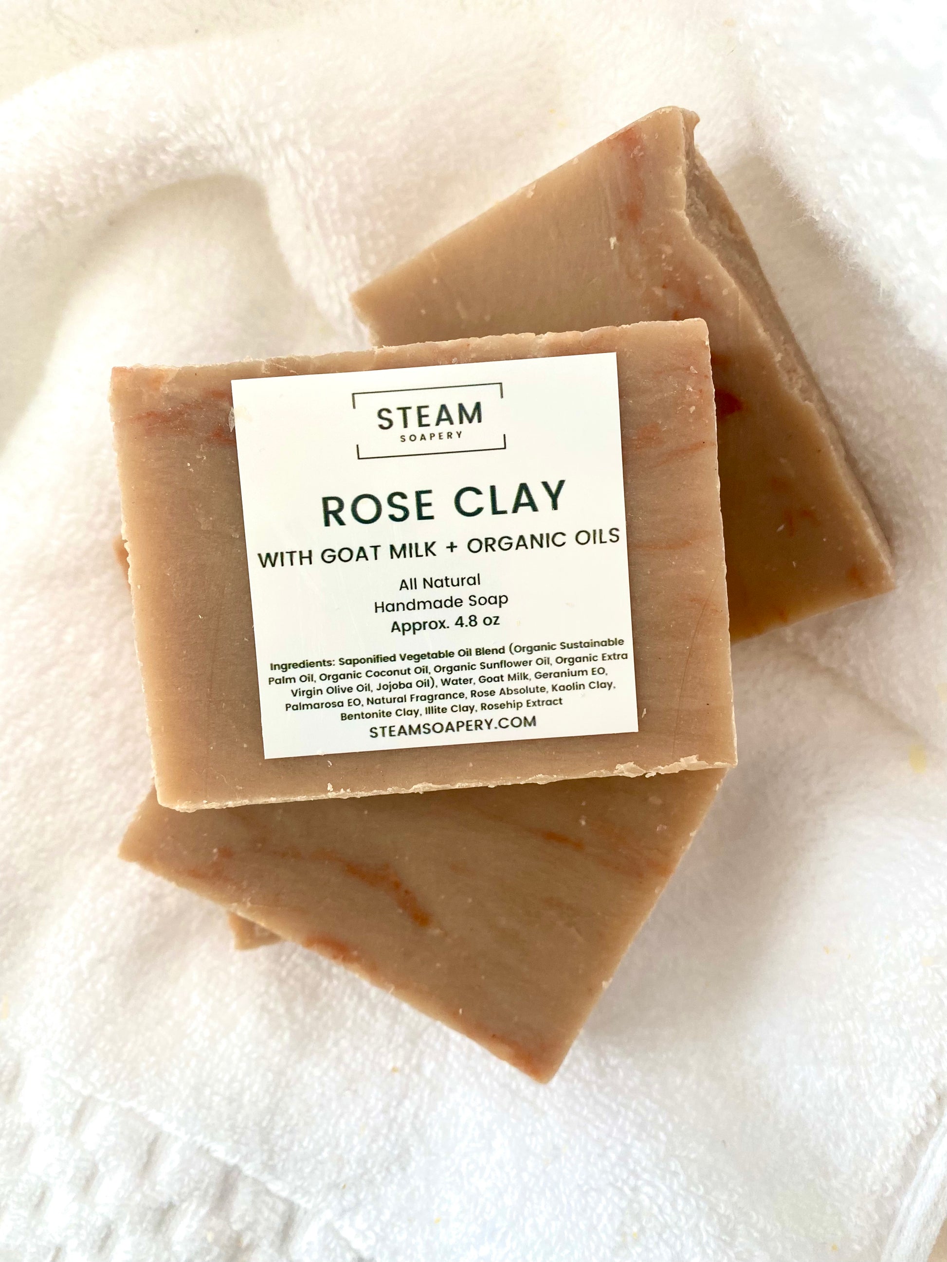 Ingredients: Saponified Vegetable Oil Blend (Organic Sustainable Palm Oil, Organic Coconut Oil, Organic Sunflower Oil, Organic Extra Virgin Olive Oil, Jojoba Oil), Water, Goat Milk, Geranium Essential Oil, Palmarosa Essential Oil, Natural Fragrance, Rose Absolute, Kaolin Clay, Bentonite Clay, Illite Clay, Rosehip Extract